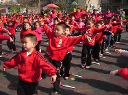 3月29日下午, 第一幼儿园的院子里分外热闹,春季幼儿早操比赛正在隆重地举行。在全园教师的精心策划和组织下,孩子们在明媚的阳光下成功展示了健康活泼、积极向上的风采。部分家长观摩了此次活动。